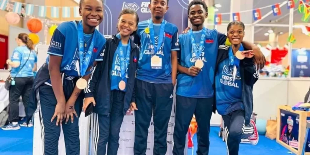 A team of five Haitian teenagers won two awards at the 2024 First Global Challenge in Athens, Greece, for their project on using leaf proteins to fight hunger, earning international recognition.